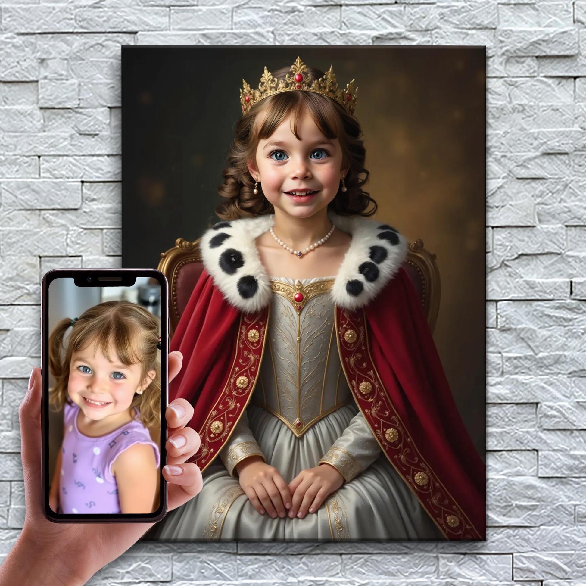 Leveranstid: ca 48 timmar – Varje porträtt skapas från grunden och skräddarsys för din lilla flicka av våra konstnärer i Italien.