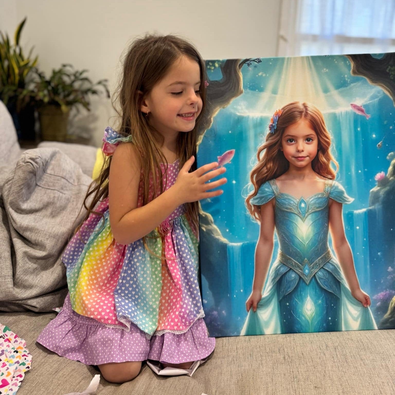 Eftersom varje porträtt är personligt och skapat exklusivt för din lilla flicka accepterar vi inga returer. Om vi däremot skulle göra ett misstag skickar vi ett nytt personligt porträtt utan extra kostnad.