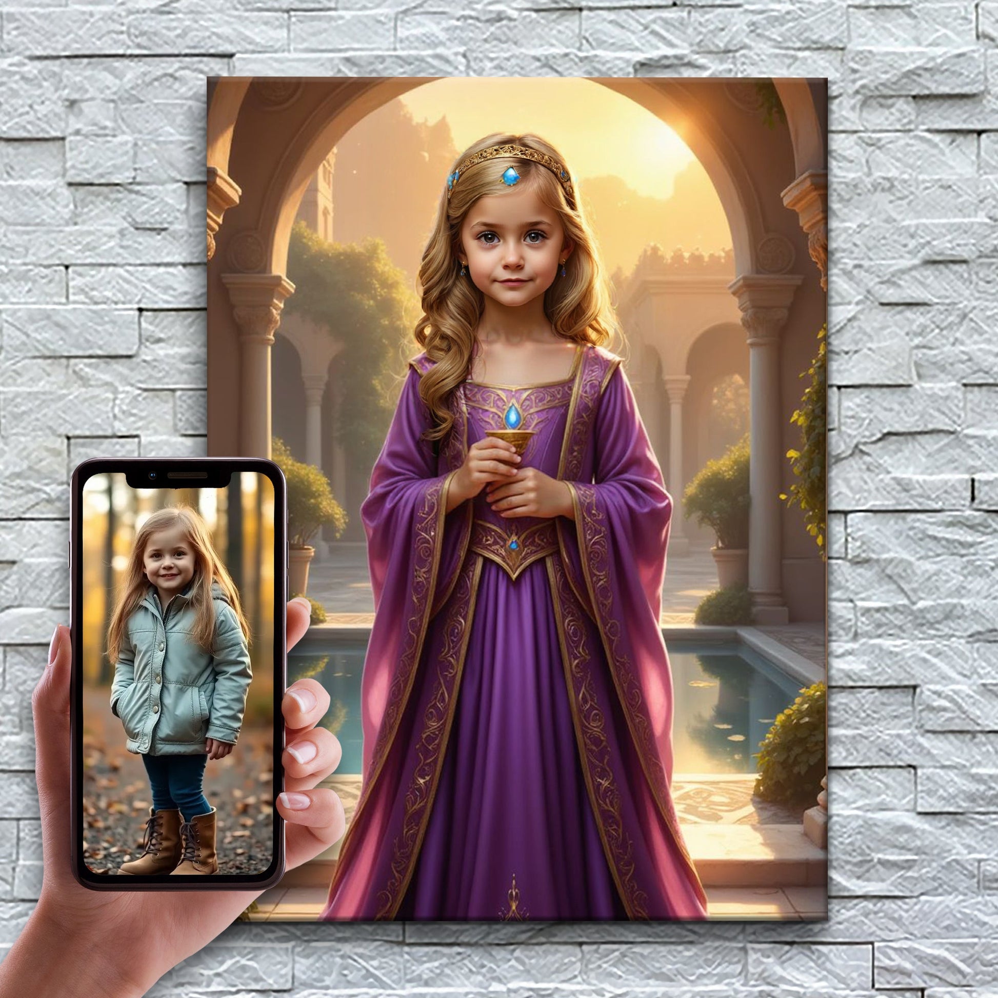 Leveranstid: ca 48 timmar – Varje porträtt skapas från grunden och skräddarsys för din lilla flicka av våra konstnärer i Italien.